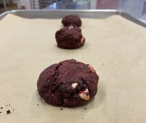 - Portion into sizeable balls and bake at 350 degrees for 7 minutes. Be careful to not overbake!